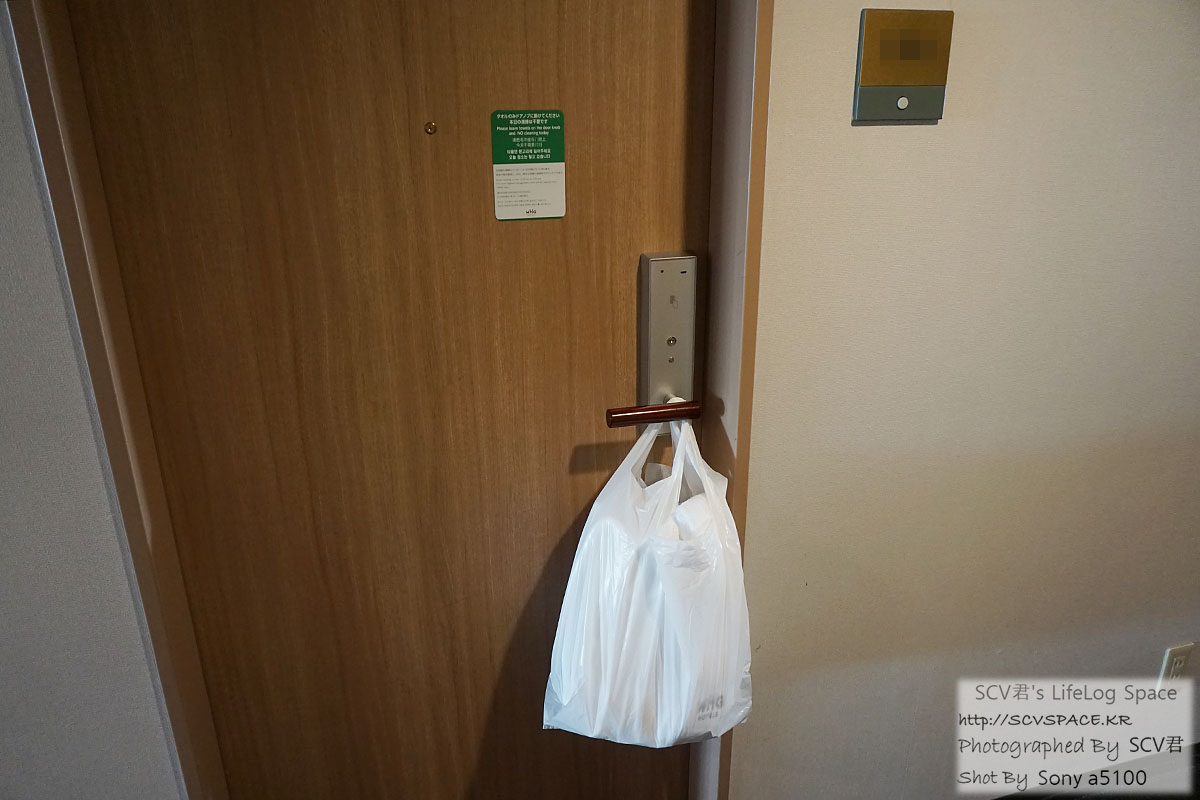 그리고 방에 돌아온게 오전 9시 35분 정도였는데, '오늘은 청소 괜찮고 수건만 달라'고 붙혀놨더니(위 초록색 표식) 그 사이 새 수건이 걸려 있었습니다.