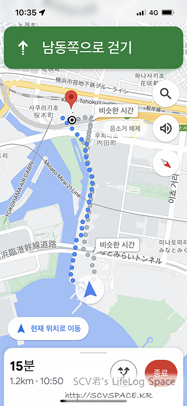 예, 최단거리 경로랑은 한참 떨어져 있었습니다. 파시피코 요코하마 가는 분들은 조심합시다.