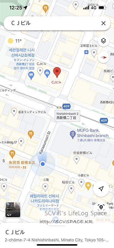 당시의 저도 이렇게 지도를 찾아봤는데, 제대로 CJ Japan 등 관련 계열사가 입점한 사옥이더군요. 푸드, 엔터테인먼트, 물류 등등.