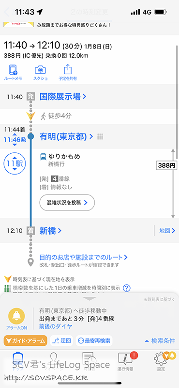최종 목적지는 신바시역이니까 바로 가면 되는데, 왜 이렇게 돈도 더 내면서 돌아가는지는 이따 언급하죠.