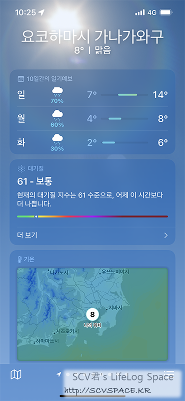 우리나라가 겨우 영상 체감온도를 가리키는 사이, 일본은 낮기온이 15도에 가까운 한국인으로써는 믿을 수 없는(?) 겨울날씨였습니다.