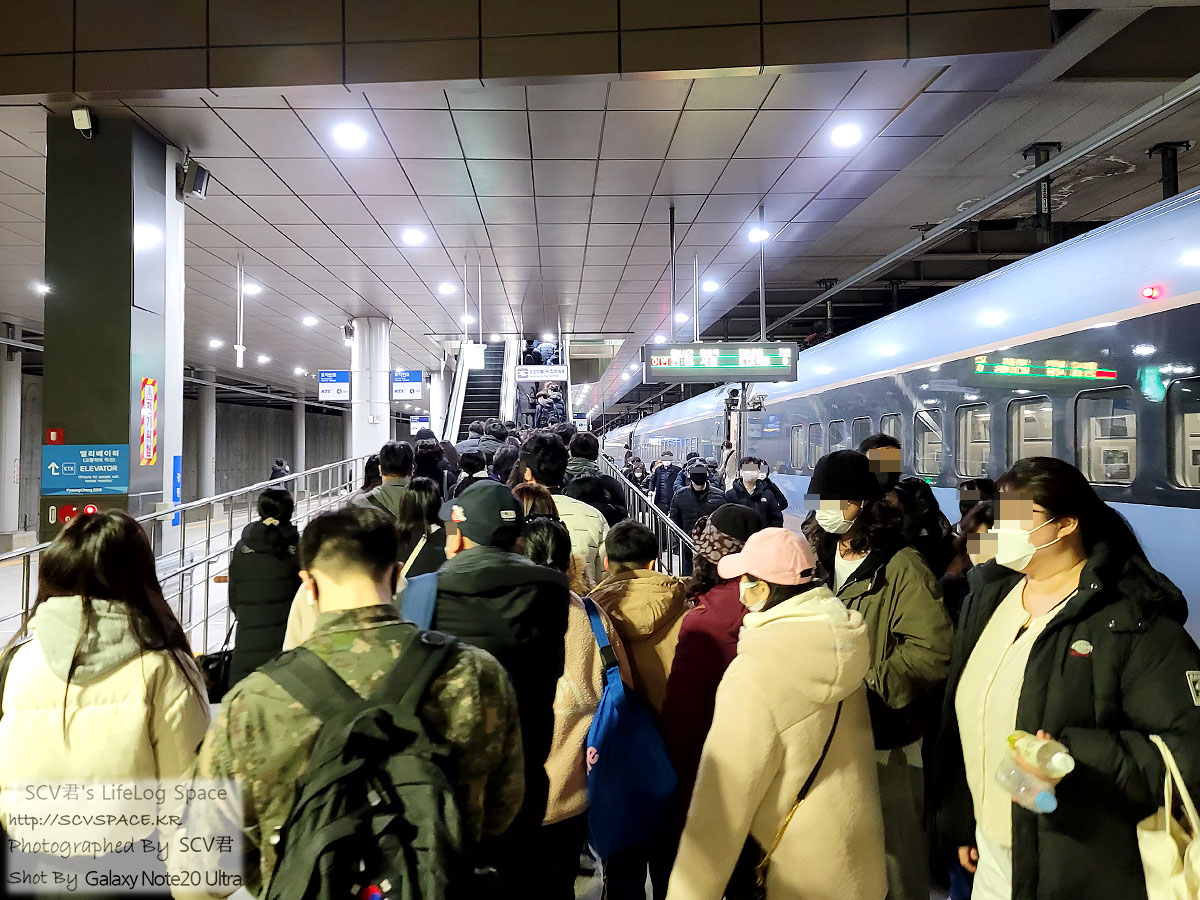 평일 밤 9시(오후 7시 서울역 출발) 인데도 강릉행 KTX는 만석에 가깝게 도착했나봅니다. 내리는 사람이 많더군요.