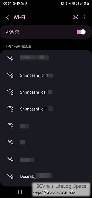 SSID를 봐서는 방마다 공유기가 설치된 것으로 보입니다. 창가 구석에 있던 탑 모양의 단말기가 공유기였을듯.