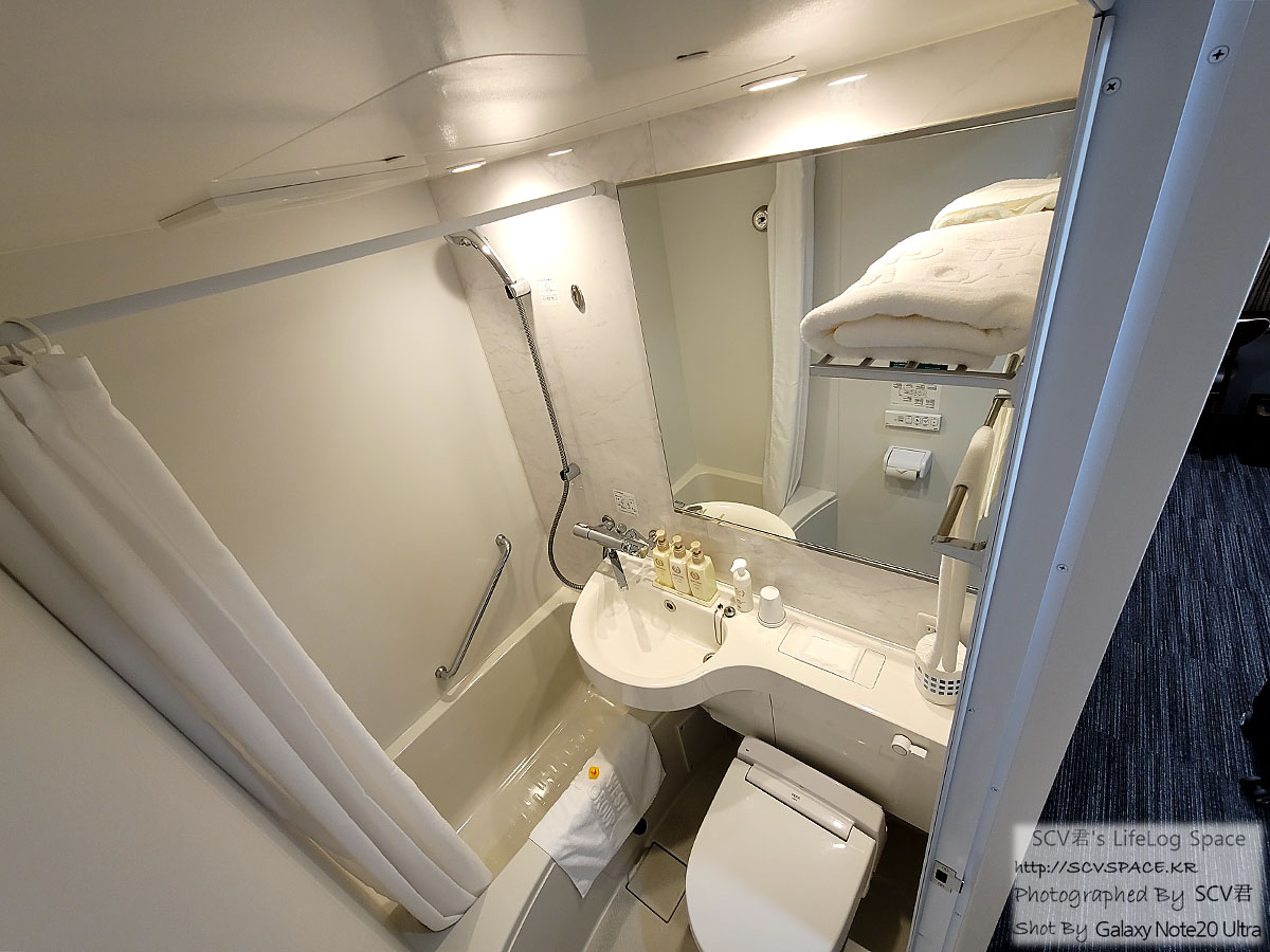 사실 옥의 티 수준의 지적사항이긴 하지만, 욕실에 들어섰을 때의 그.. 뭐랄까 '간이시설' 같은.. 플라스틱 구조물 위로 올라서는 느낌부터가 좋은 인상이 아니었던지라.