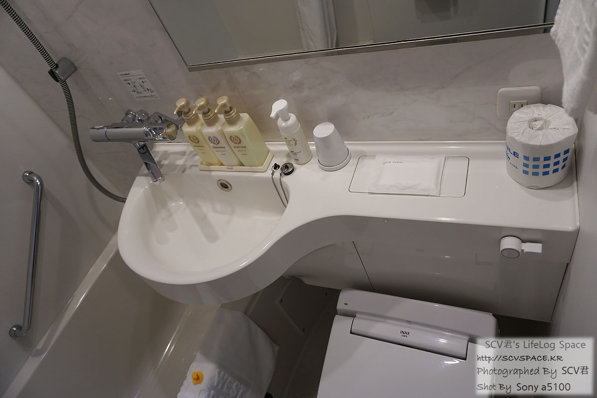 그 외 비품이라던가는 평범했고, 기억상 세면대 물 나오는 부분의 회전반경이 넓어 세수할때 편했습니다.