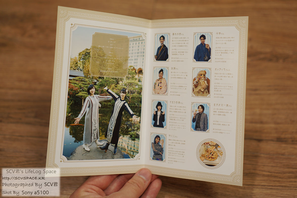 북클릿 쪽은 이런 느낌. 출연하는 점쟁이분들 목록 정도가 더 있습니다.