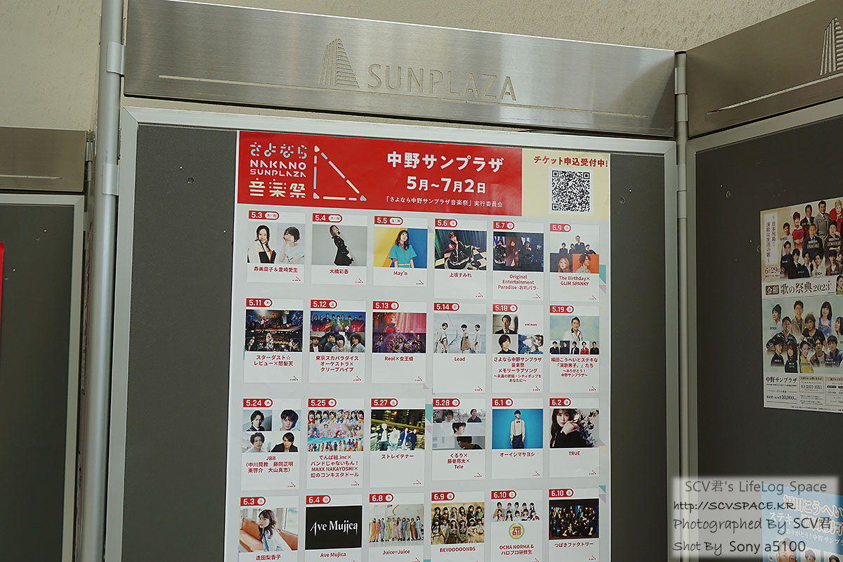 이번에 제가 온 계기인 '안녕 나카노썬플라자 음악제(さよなら中野サンプラザ音楽祭)' 안내 포스터도 둘러보고.