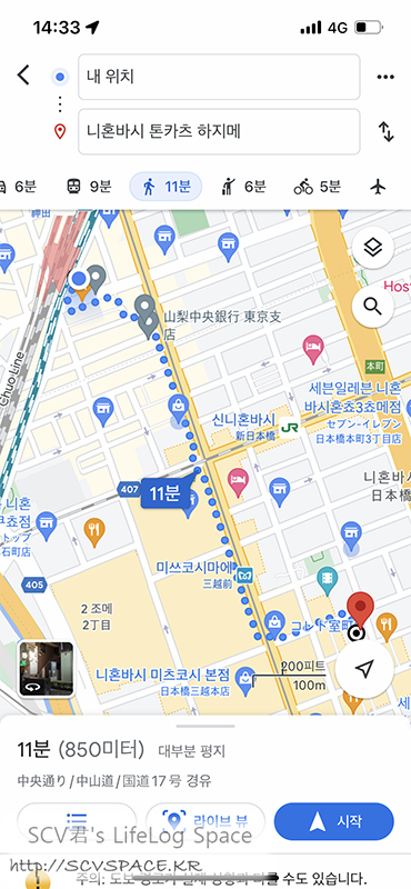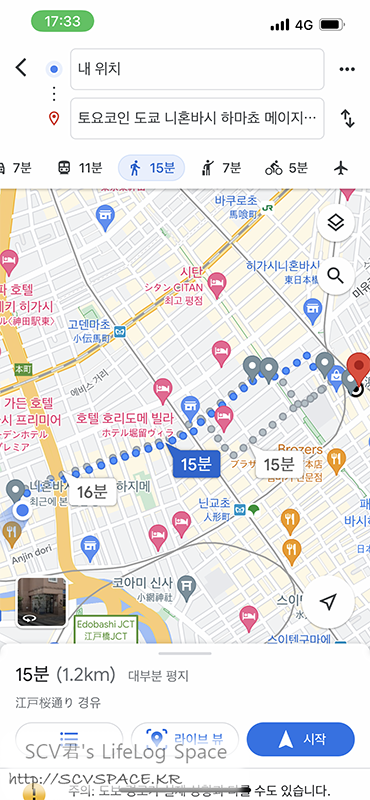 근처 역에 도착하고도 대충 이런 경로로 더 걸었습니다.