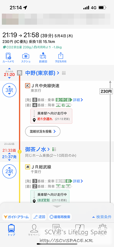 그래봤자 1-2분 차이긴 한데, 여기서 환승열차를 놓치거나 할 수도 있으니 말이죠.