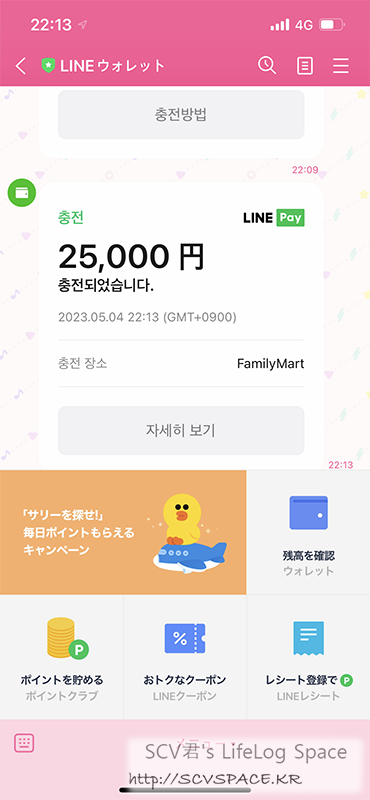 여기서는 라인페이 잔액을 충전하고, 아이스크림의 다음을 기약(?) 합니다.