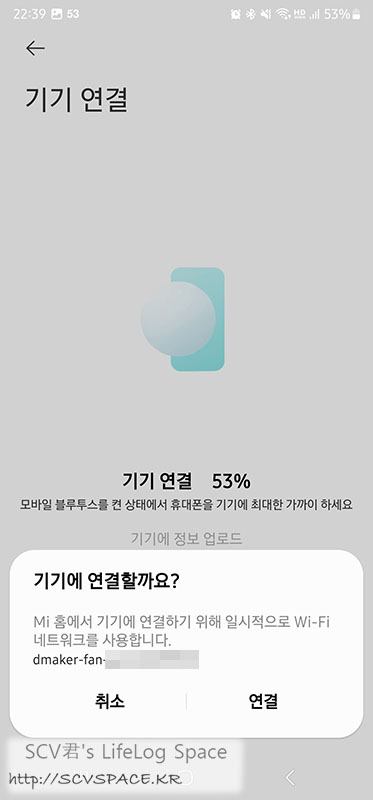 중간에 기기에 직접 Wi-Fi 로 연결하고 집의 2.4GHz SSID 정보를 전송하기도 하면서 알아서 설정 진행하고,