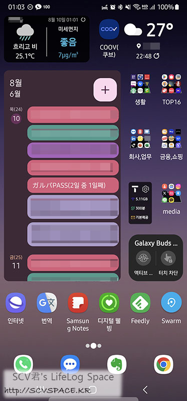 기존 홈 화면 구성 중에서 맨 오른쪽이 좀 쓸떼없는 여백(?)이 많았던지라 그쪽을 좀 정리했습니다.