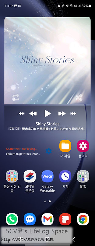전면의 좁은 디스플레이에 아이콘과 위젯이 꽉 차서 좀 답답해 보이기는 합니다만, 어차피 제가 보고 쓰는거니까.