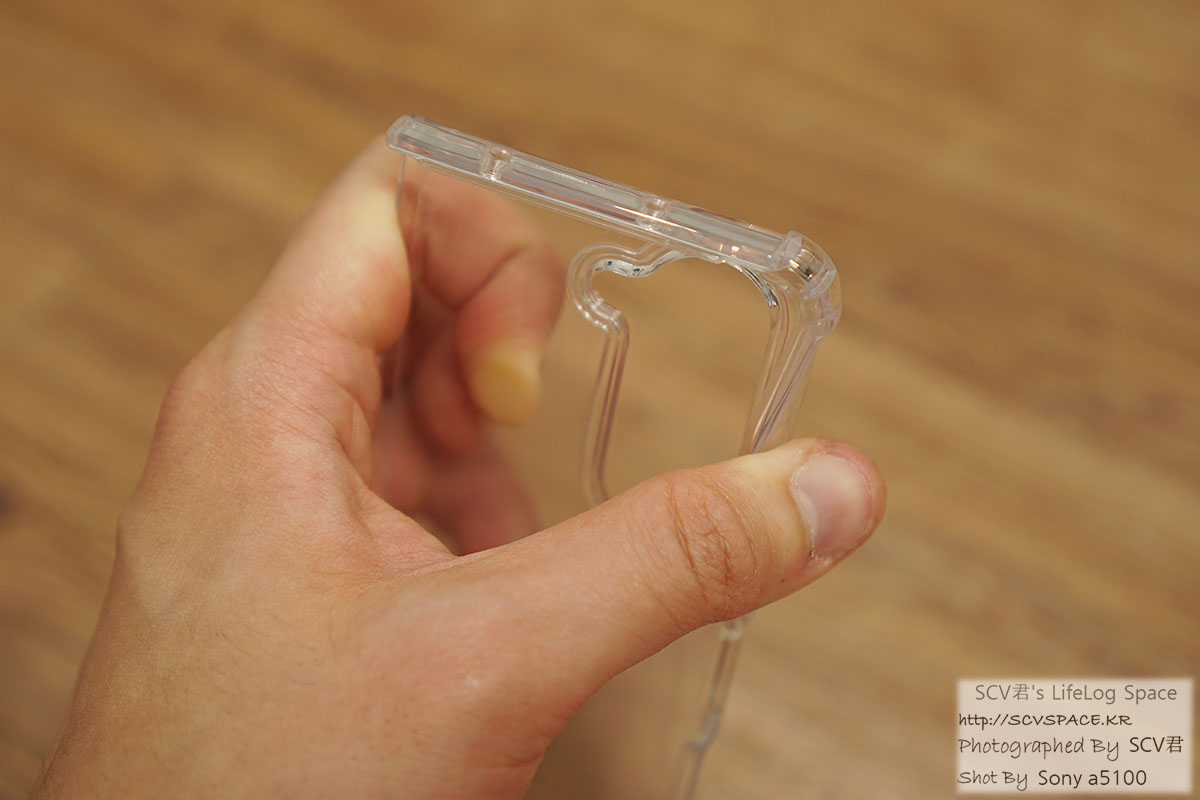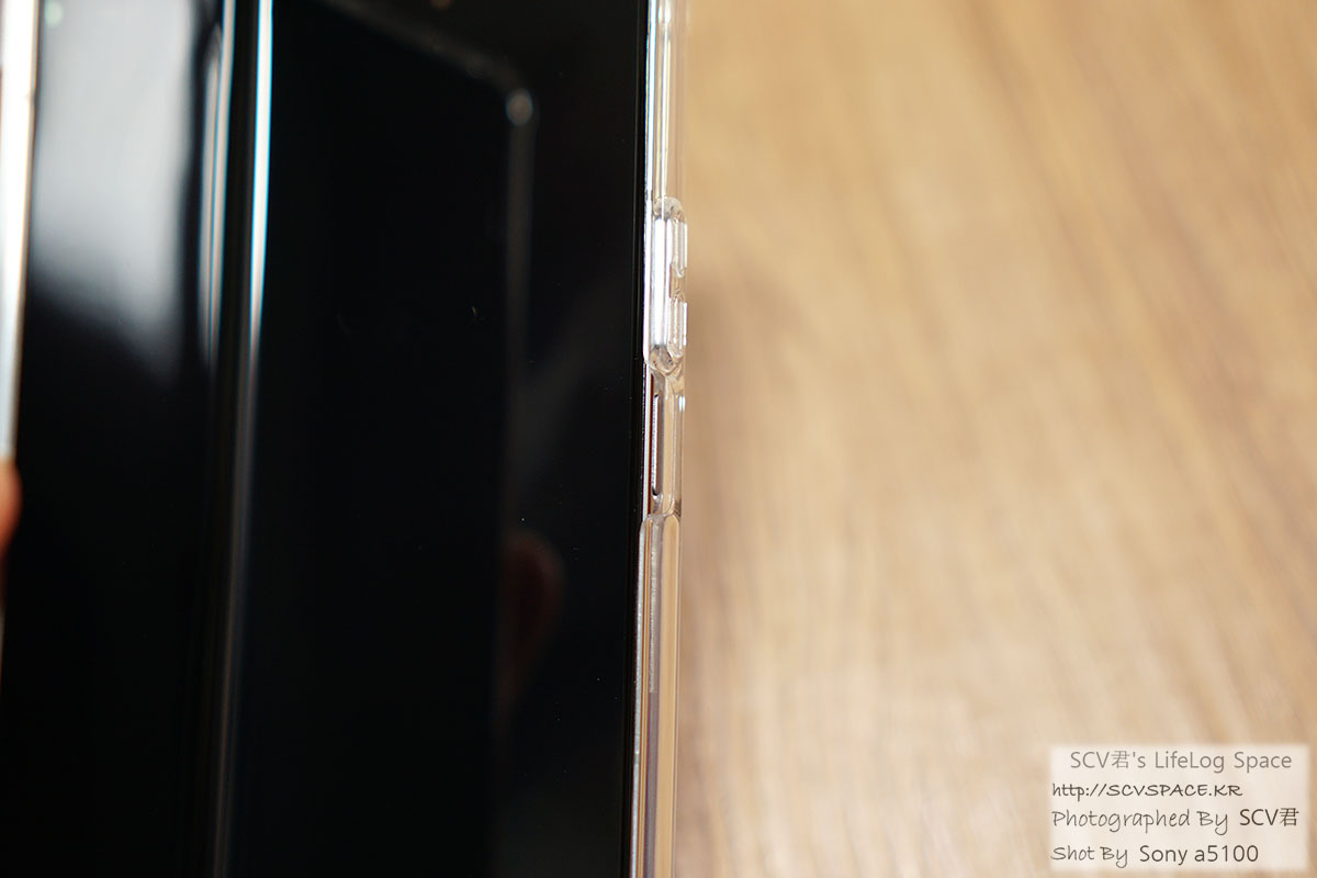 먼저 2번에서 부착한 케이스보다는 여유가 있어서, 보호필름 혹은 화면 테두리 터치 시에 간섭이 적습니다.
