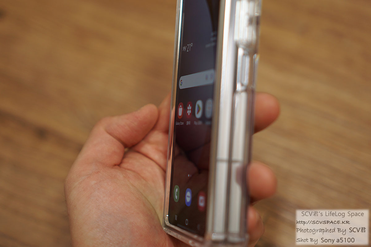 폴드5 예약 전에 디지털플라자 방문해서 목업 케이스 봤을때처럼 전체적인 두께가 많이 늘어나지 않는건 좋았습니다.