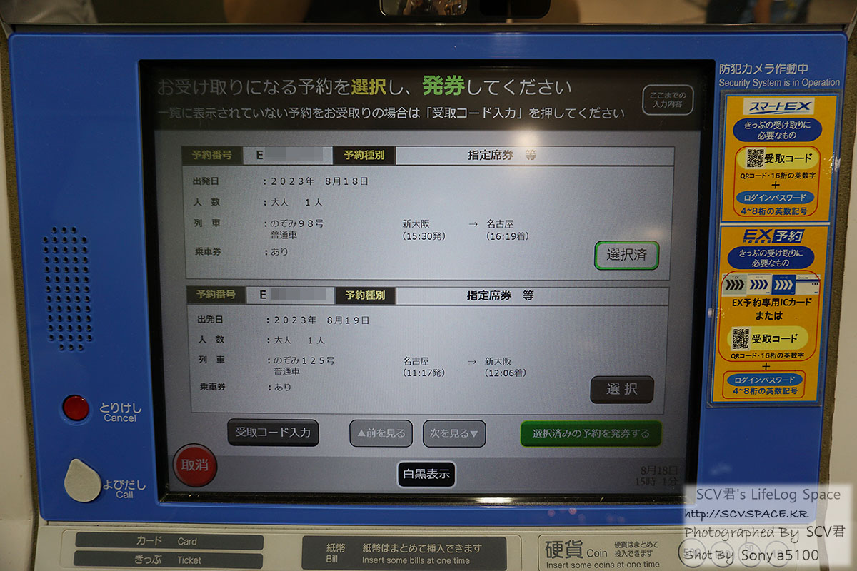 그리고 예약처에 따라 발권 위치가 다릅니다. 그게 세가지나 있구요. JR 도카이, JR 동일본(에키넷), EX예약.