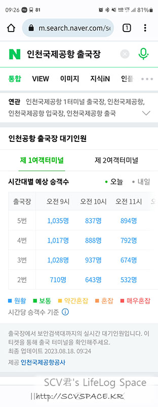 계획을 넉넉하게 잡긴 했어도 어쨌든 계획보다 늦어지는거다 보니, 가면서 보안검사장 대기인원 계속 체크했던 기억.