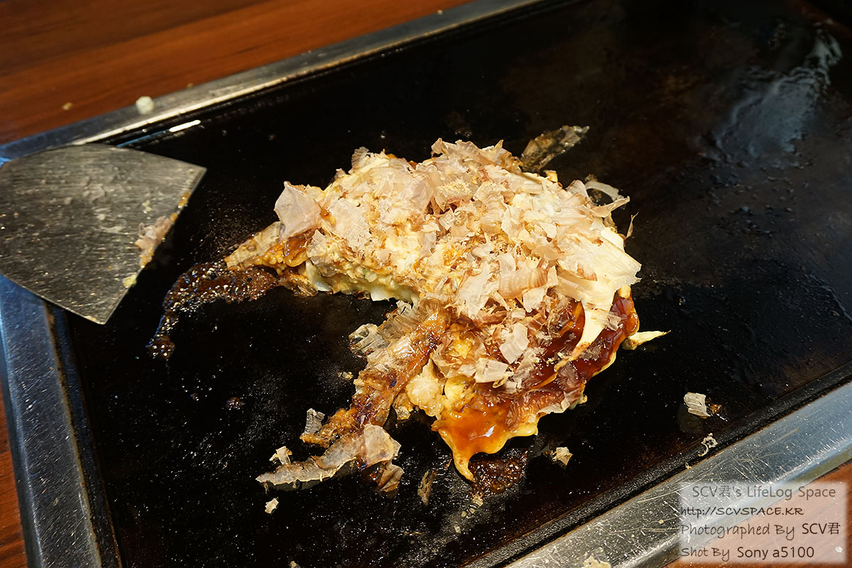 여기서 먹어보고 집에 있는 오코노미야키 소스랑 맛이 약간 다르니 하는 이야기부터 말이죠.