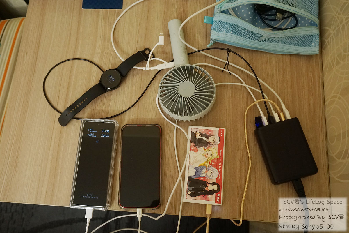 이후엔 일단 땀부터 닦아내고 뭘 하자 싶어져서 기기들 충전기 꽂아놓고 씻으러 들어갔습니다.
