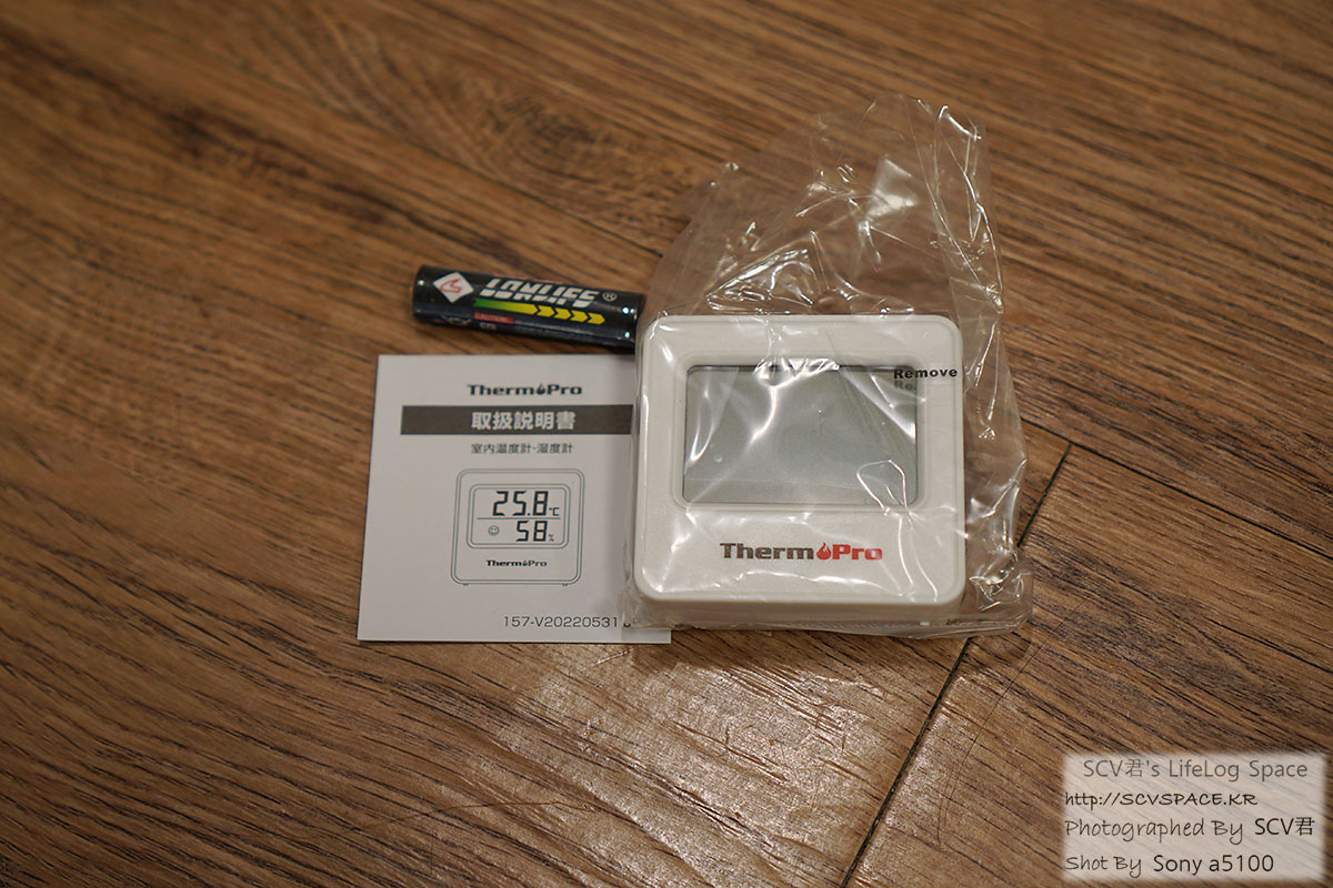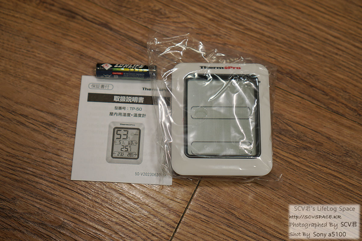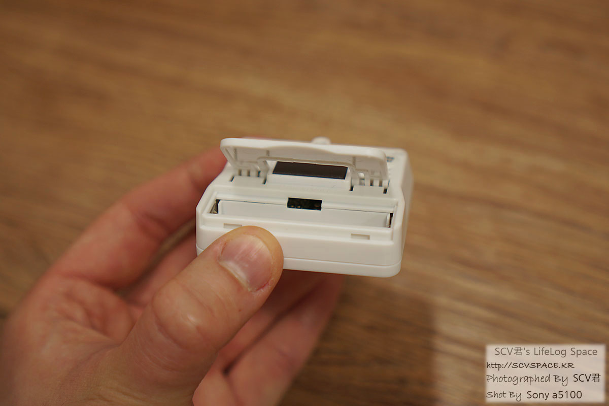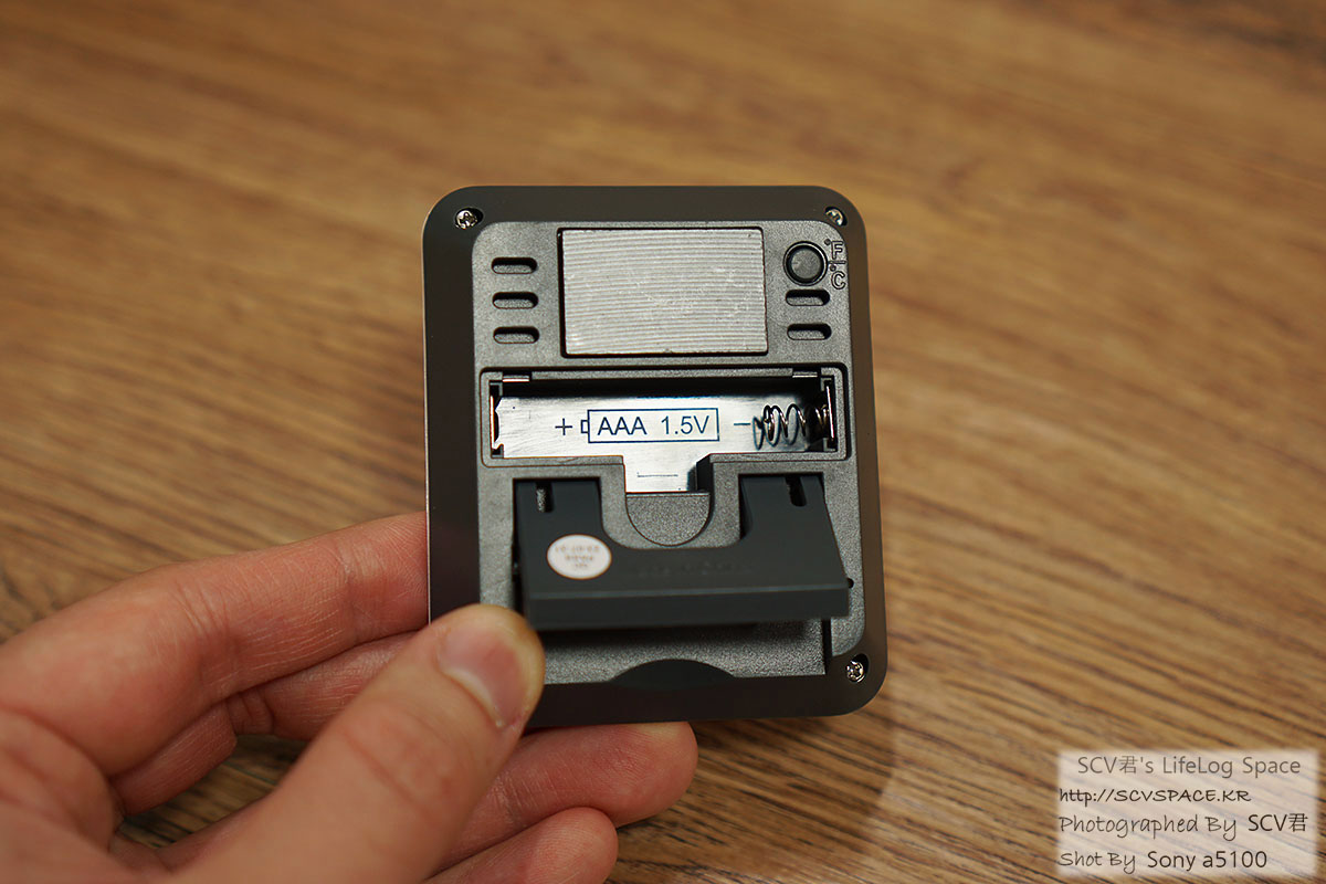 단순하게 온도, 습도만 표시되는 모델이네요. 배터리는 AAA 1개 사용.