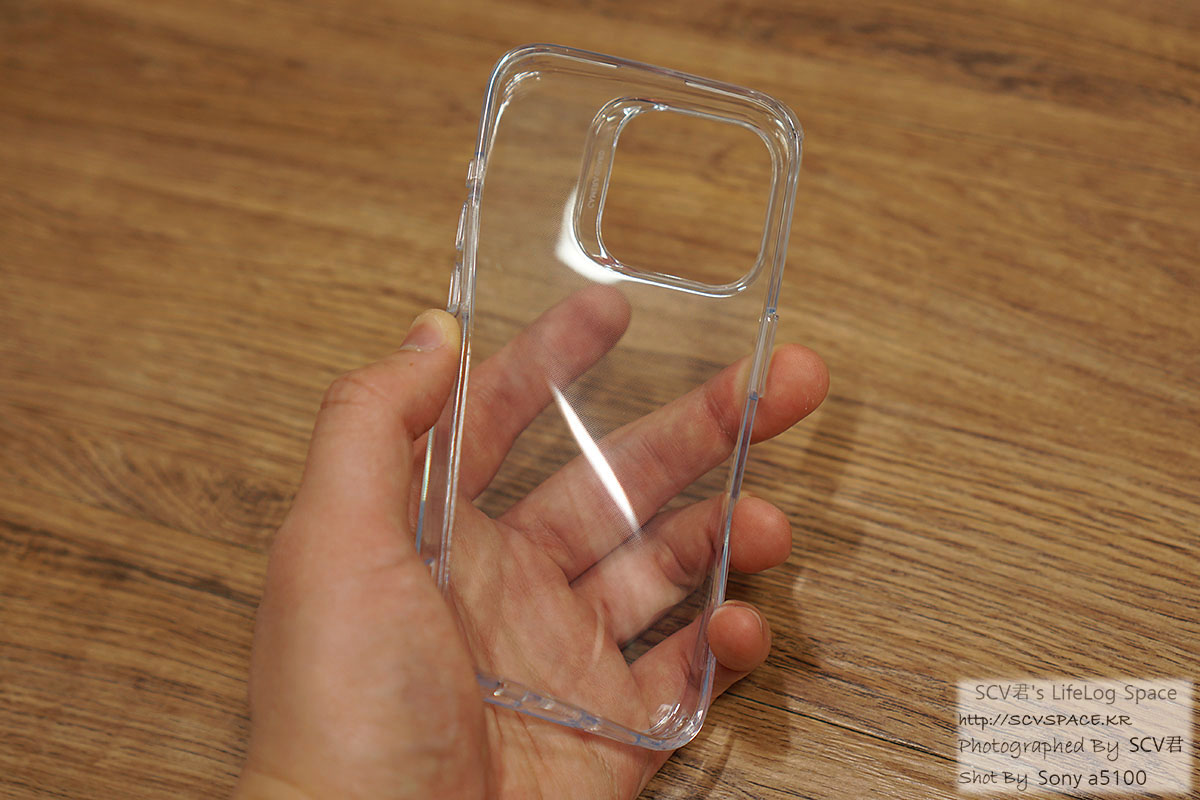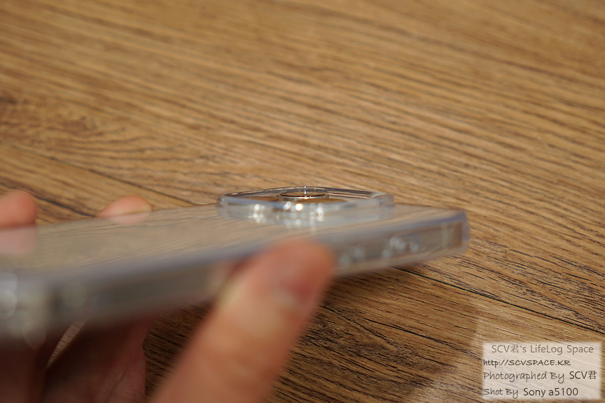 뒷면은 가려지는 부분 없이 다 보이고, 유난히 튀어나온 카메라 부분도 케이스 안쪽으로 0.2 ~ 0.4mm 정도 들어가서 살짝 보호됩니다.