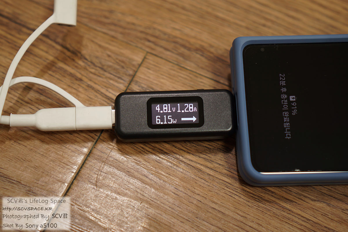 꽂아놓고 좀 지켜보면, 충전기와 기기가 정보를 주고받은 뒤 전압과 전류가 변동되는 모습을 볼 수 있습니다.