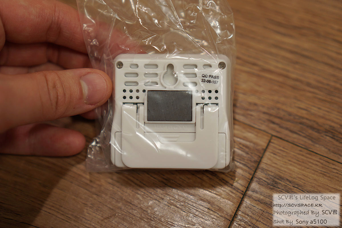 그리고 부착용 자석과 스탠드가 있고, 뒤쪽에 섭씨,화씨 표시 전환 버튼이 있습니다.