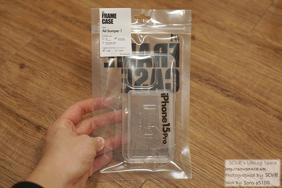 받아뒀던 케이스부터 언급하겠습니다. 프레임바이 에어범퍼 아이폰15 프로용, 카드 1장 수납 가능 [상품페이지]