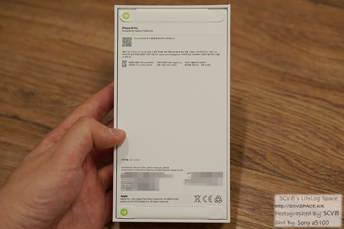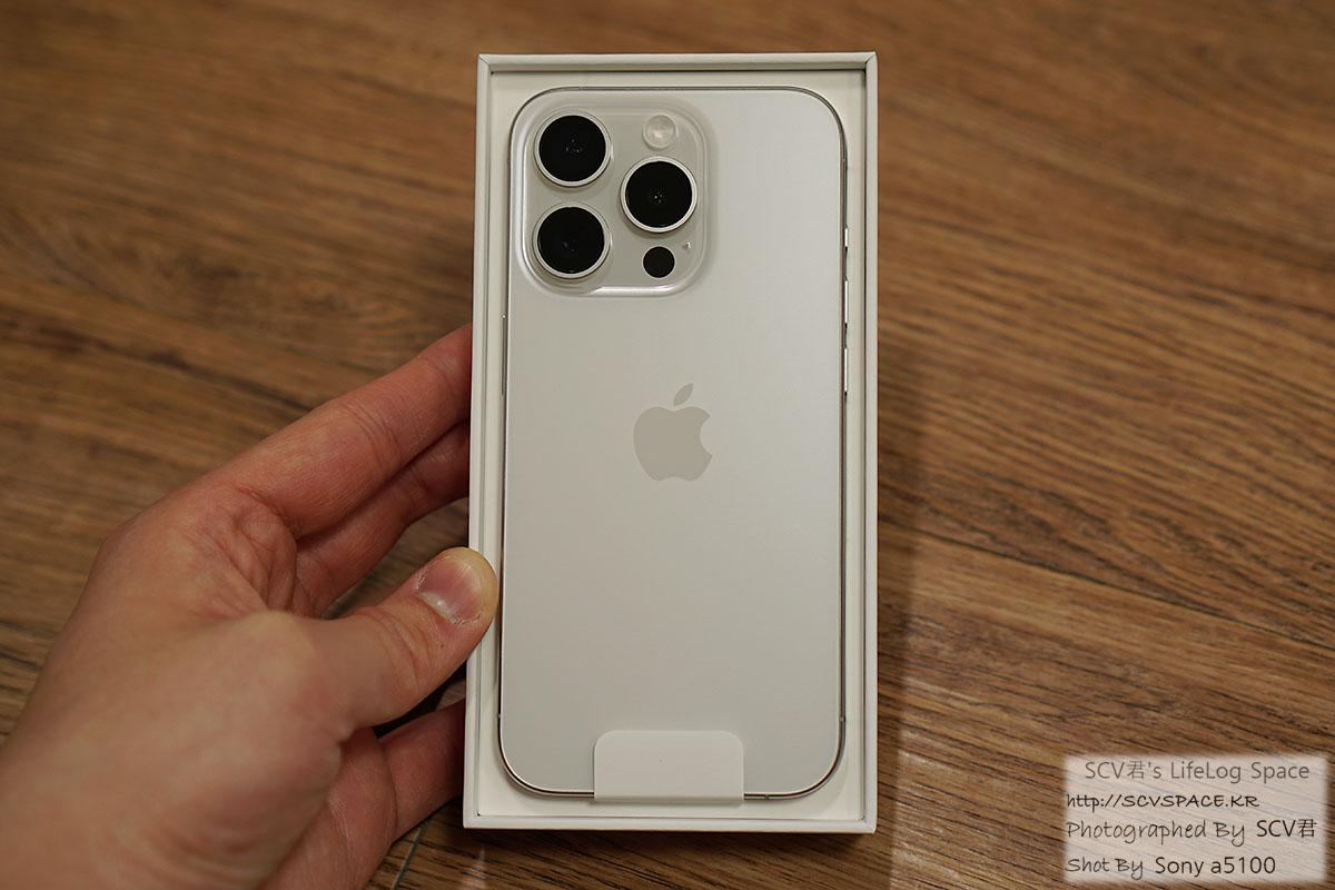 그리고 드디어 본체 박스 열어본 이야기. 아이폰15 프로 화이트 티타늄 256GB 모델입니다.