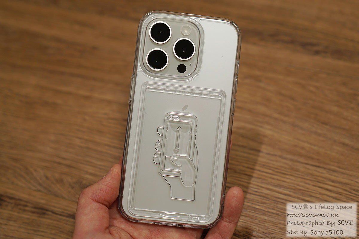 받아뒀던 케이스부터 언급하겠습니다. 프레임바이 에어범퍼 아이폰15 프로용, 카드 1장 수납 가능 [상품페이지]
