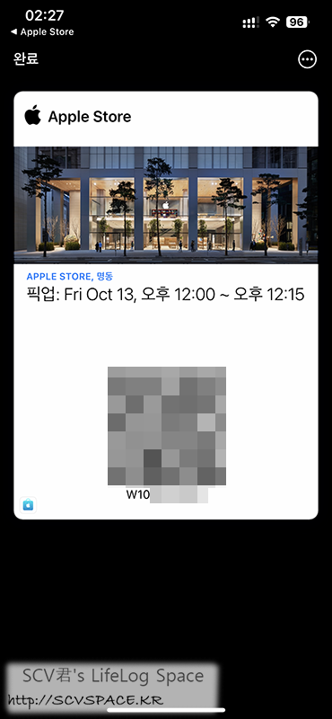 애플스토어 앱에 로그인하면 제 주문정보를 볼 수 있는데, 여기서 픽업시 보여줄 패스를 생성할 수 있습니다(위 왼쪽)