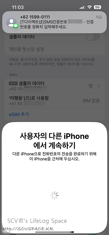 외부 과정 필요없이 단말기에서 단말기로 eSIM 만 이동된다고 생각했기에 살짝 당황.