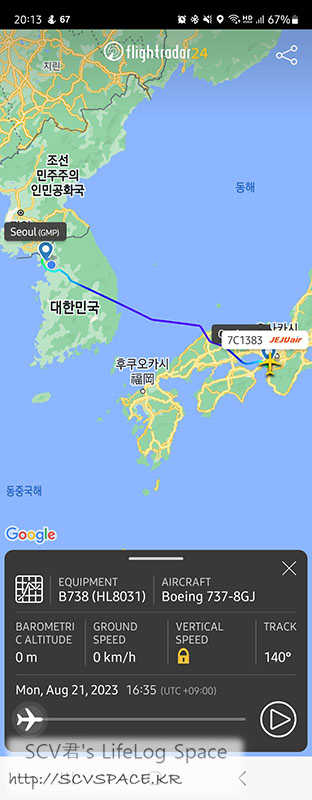 아무튼 그때의 운항정보. 잘 날고 있습니다.
