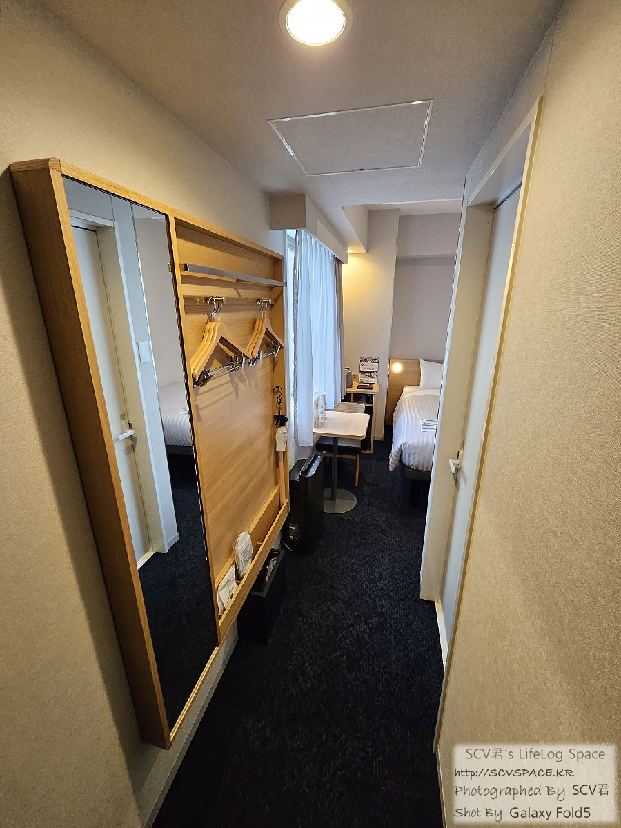 살짝 좁은 감은 있지만 동선에 걸리적거리는 가구도 없고, 작은 테이블이라던가 옷걸이 수납공간 같은것도 알차게 갖춰져 있습니다.