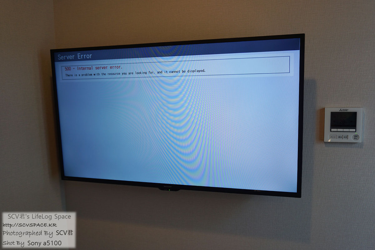 그 외엔 여러 안내사항이 나올 TV나(이날은 그 안내페이지가 에러 상태였지만) 침대 사이 공간도 한컷씩.