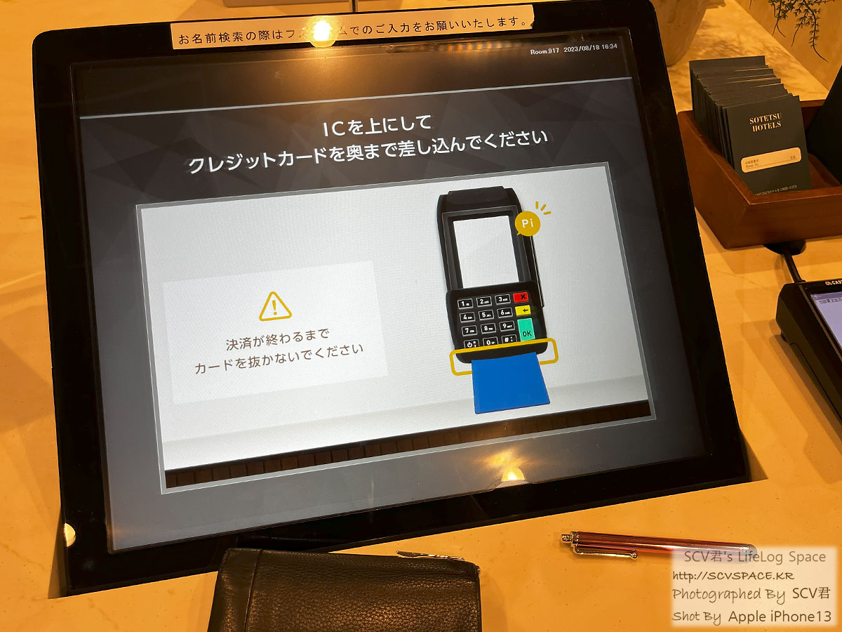 들어간 뒤에는 호텔 직원의 안내에 따라 단말기로 안내됐습니다.
