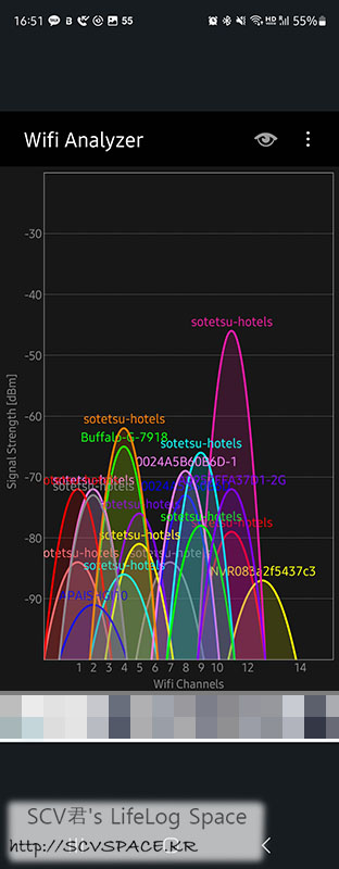 같은 SSID라도 여러 AP에서 신호가 나오기 때문에 호텔 안에 사람들이 많아도 그나마 간섭이 덜하지 않을까 싶고.