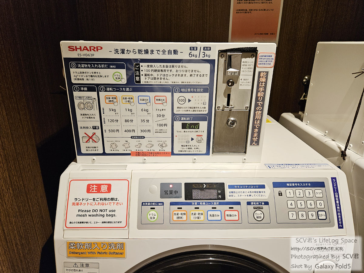그리고 간만에 호텔에서 코인 세탁기를 이용했습니다.