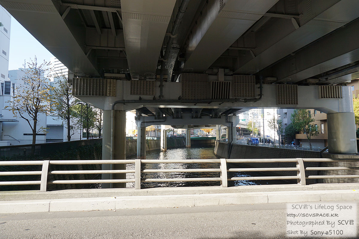 강이 흐르는 고가도로 밑으로도 지나가고.