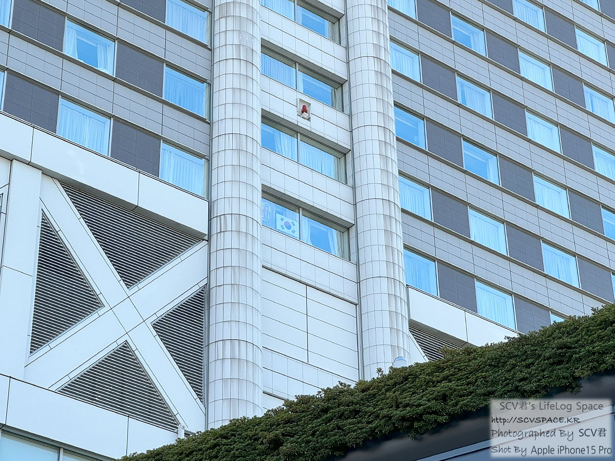 아, 호텔 창문에 태극기 붙혀둔 분이 있어서 한컷.