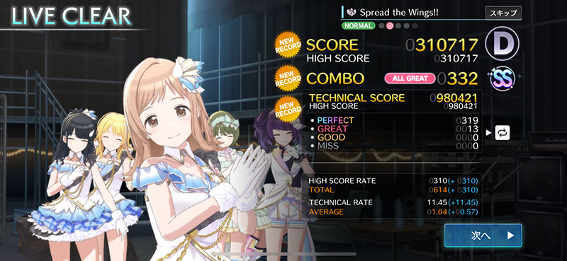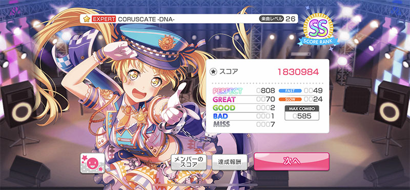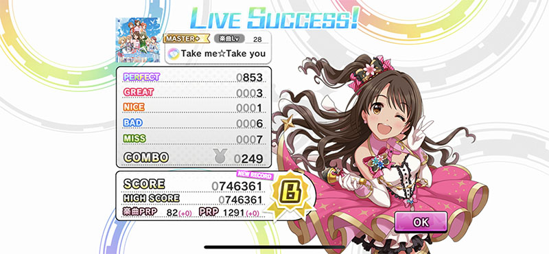 데레스테는 MASERT 27이상, 걸파는 EXPERT 26 이상을 좀 어려워했는데 조금씩 덤벼도 살아남는(중간에 무료 재화를 쓰지 않을만큼 노트를 놓치지 않는) 빈도가 늘어나고 있습니다.