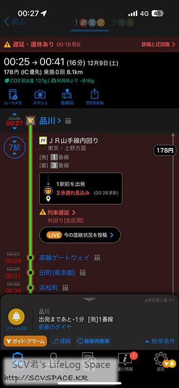 근데 막차에 가까워지니 열차 운행시간도 변동이 크고(역마다 조금씩 더 기다려주더군요) 해서 환승하려 했던 야마노테선 열차를 눈앞에서 놓쳤습니다.
