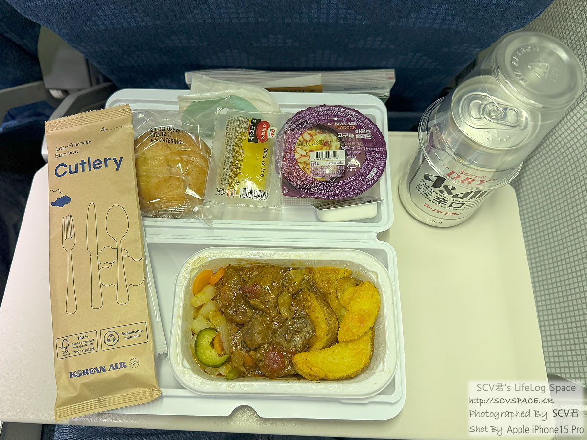 기체가 안정된 다음엔 기내식이 나왔습니다. 간만에 맥주와 함께.