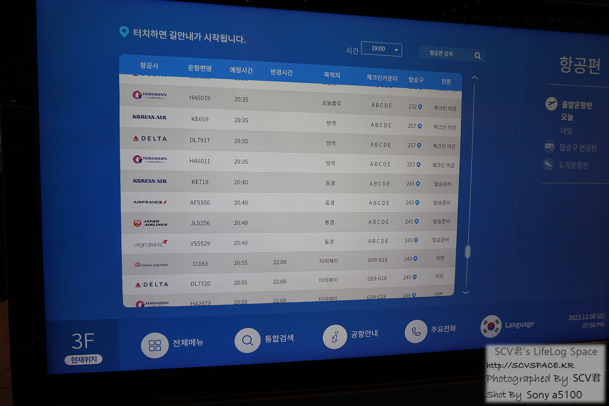 탑승게이트 다시한번 체크해보니 243번 맞네요. (리스트 가운데 20:40 출발편)