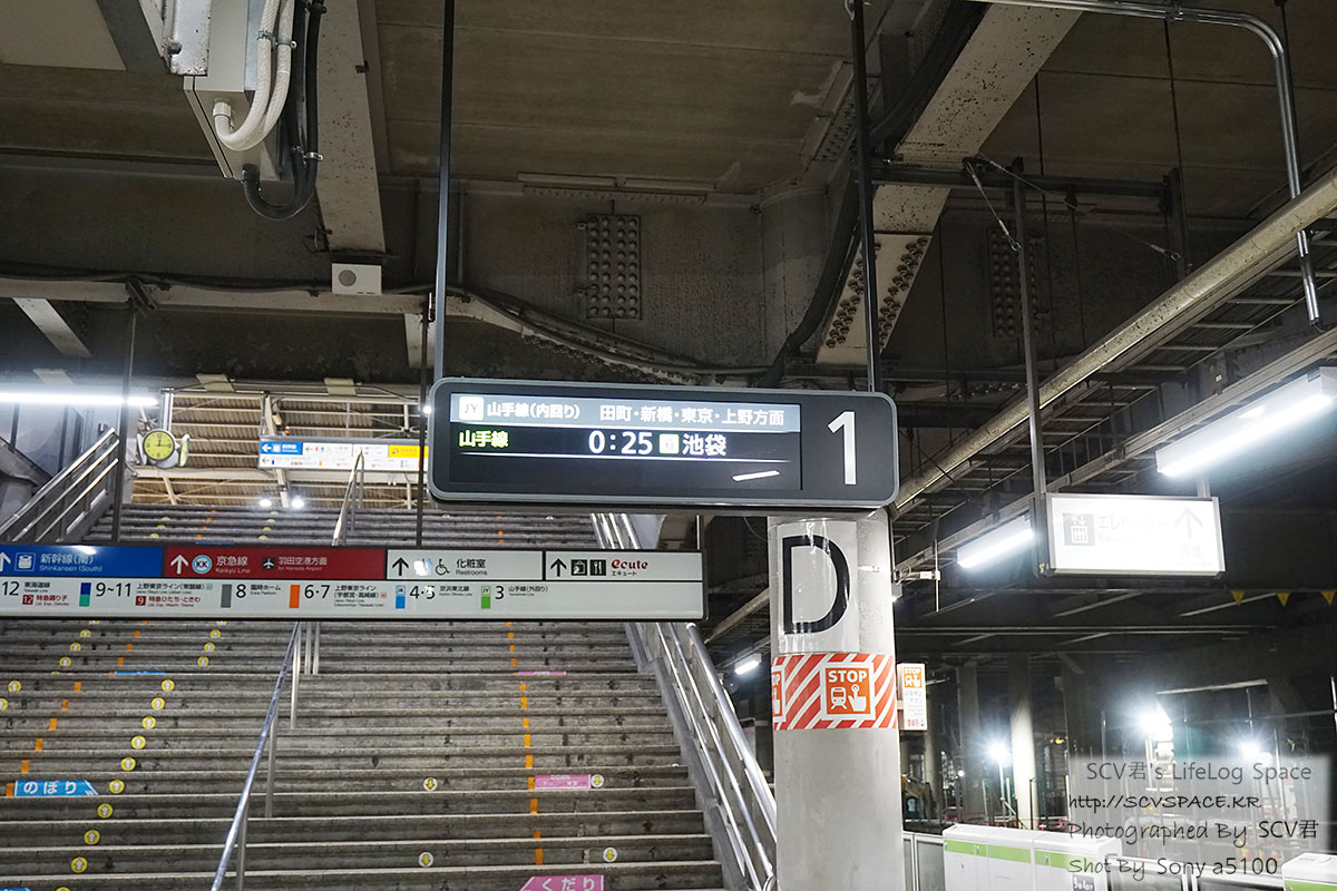 근데 막차에 가까워지니 열차 운행시간도 변동이 크고(역마다 조금씩 더 기다려주더군요) 해서 환승하려 했던 야마노테선 열차를 눈앞에서 놓쳤습니다.