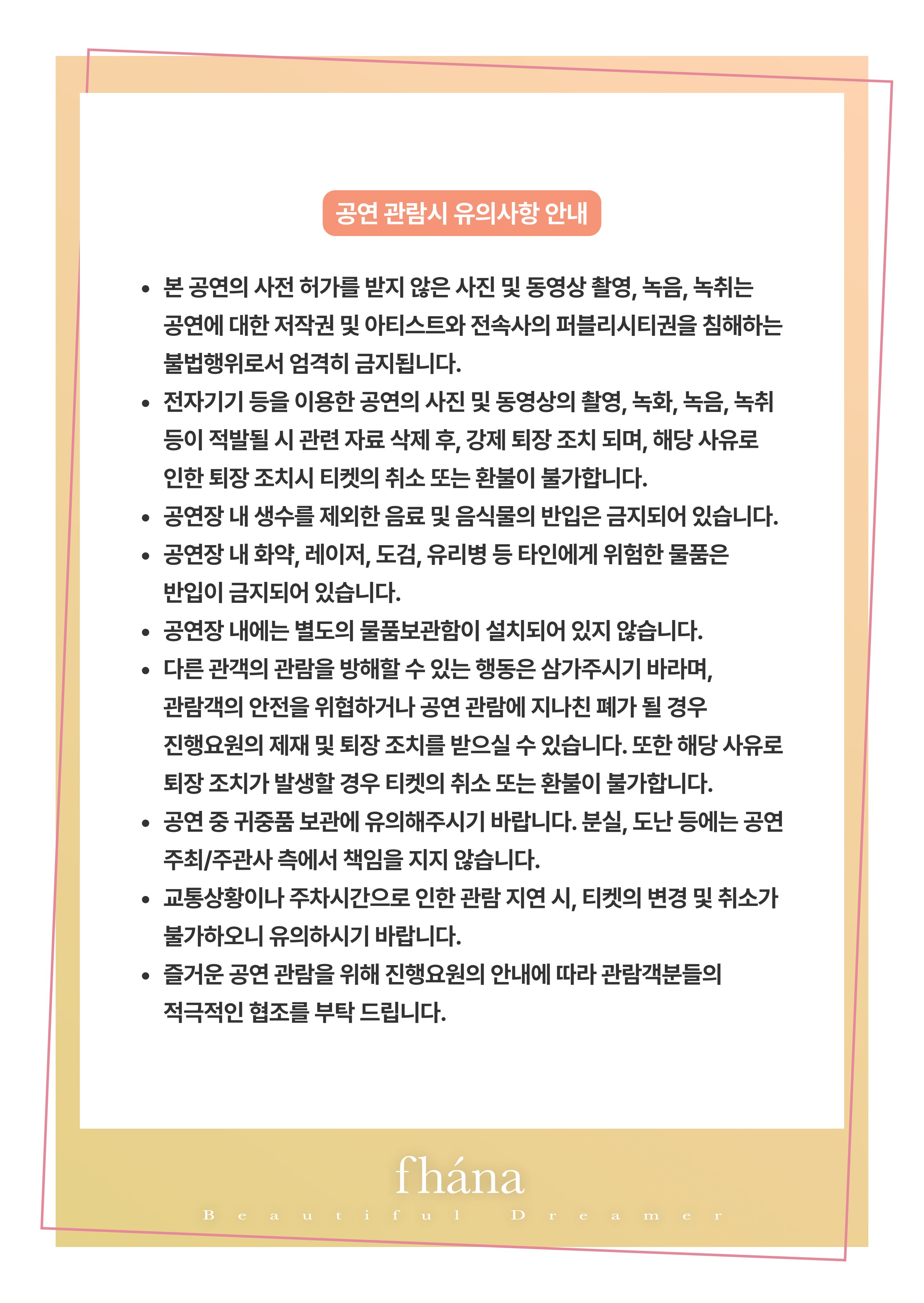 내한, 일본 원정 통틀어 라이브/이벤트 참가상 처음으로 이 촬영금지 스티커를 나눠주셔서 붙히고 들어갔습니다.