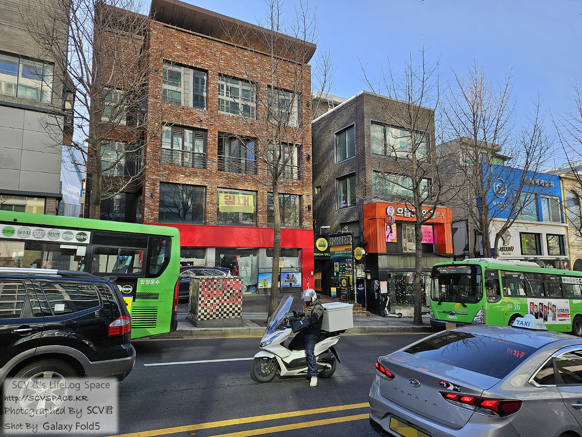 여기는 홍대입구역 9번출구 쪽에서 홍익대학교 방향으로 올라가는 도로인데.. 차례차례 옆건물이 빈건물이더군요.