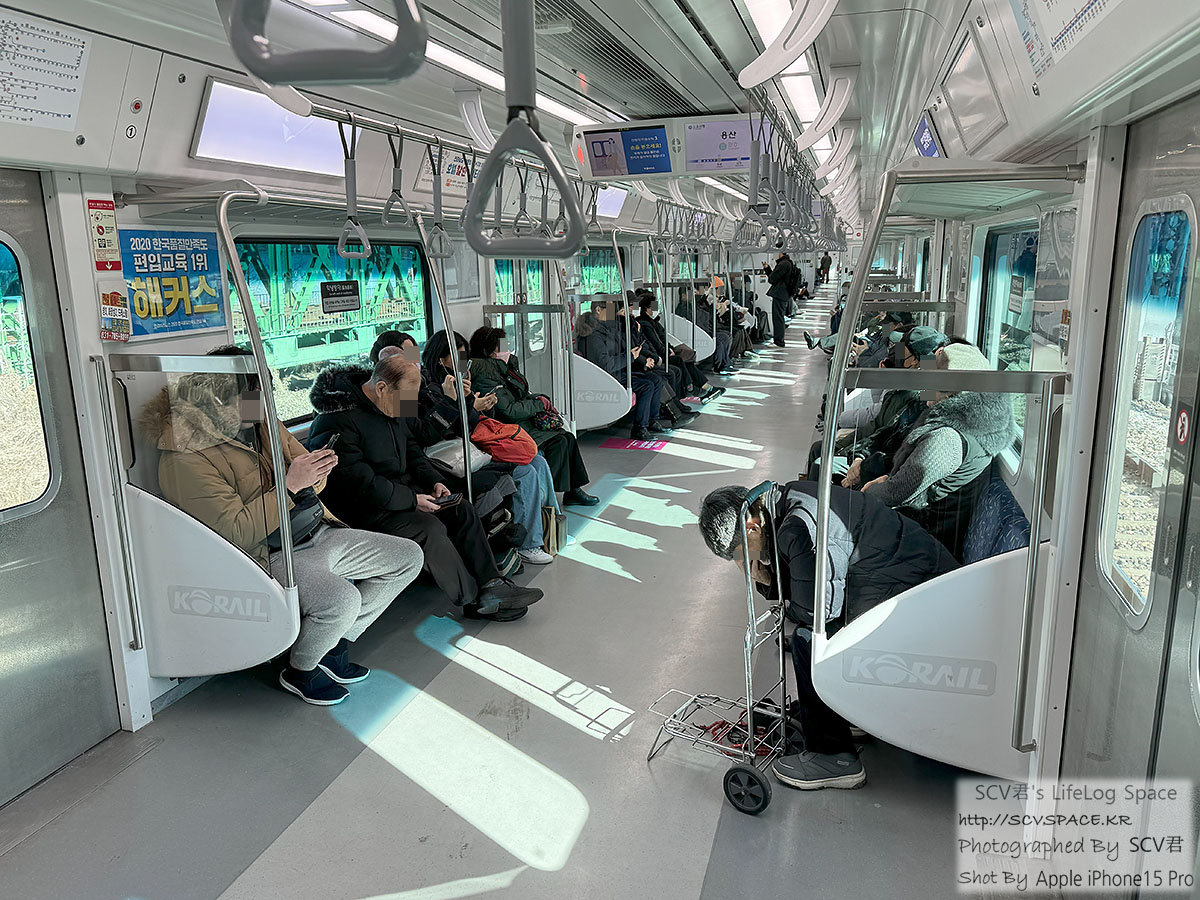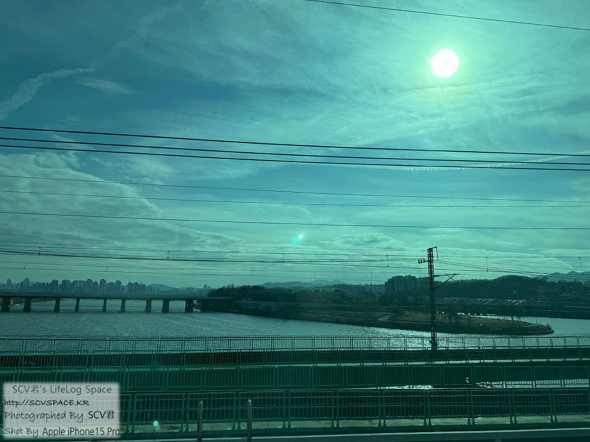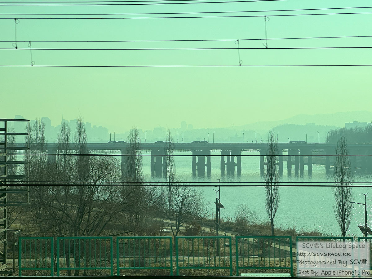 어쩌다 보니 출근이 좀 늦었는데, 1호선 지상구간 열차에 사람이 별로 없으면 꽤 재밌는 풍경을 보게 됩니다.