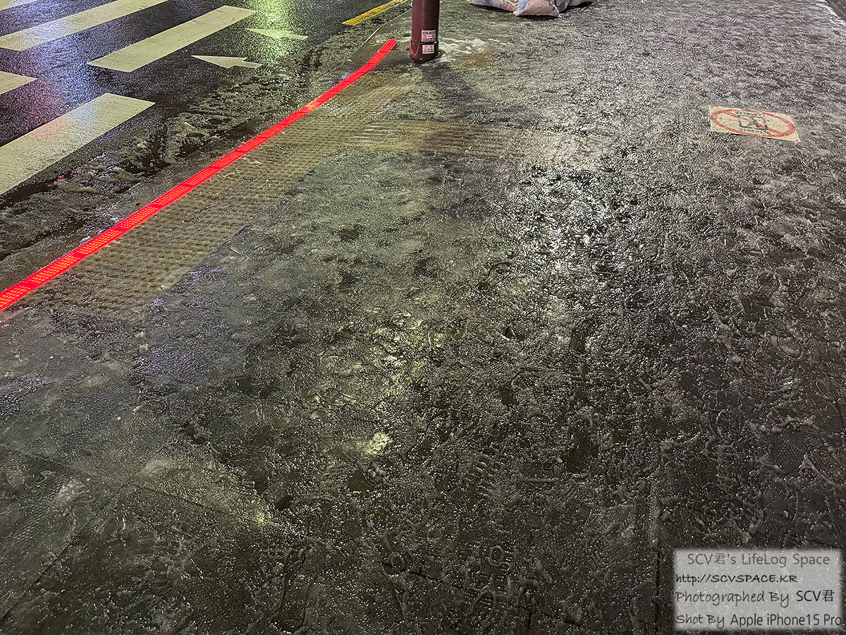 낮동안 내린 눈이 녹아서 질척거리는 중이었는데 밤이 되면서 살얼음이 되어가는 최악의 현장이었습니다.