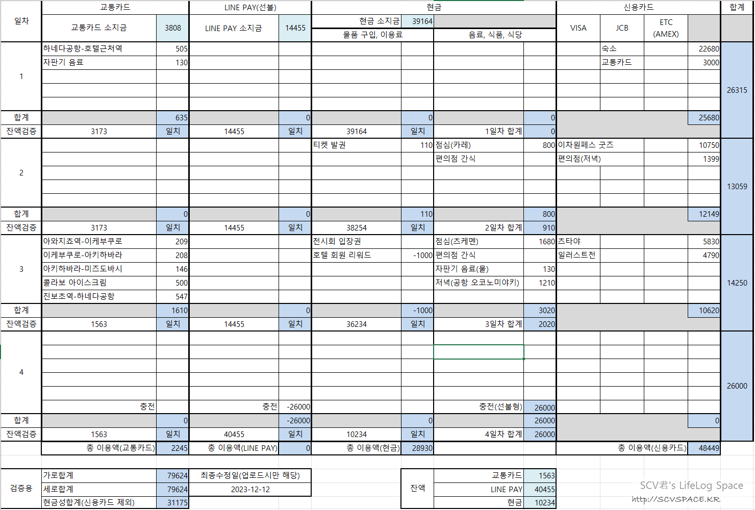 그럼 평소처럼 여행경비나 느낀점도 좀 볼까요.